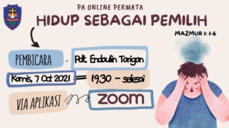 Hidup Sebagai Pemilih (Hari Kesehatan Mental/Jiwa) Mazmur 1: 1 – 6Jalan orang benar dan jalan orang fasik 1:1 Berbahagialah orang yang tidak berjalan menurut nasihat orang fasik, yang tidak berdiri Read More