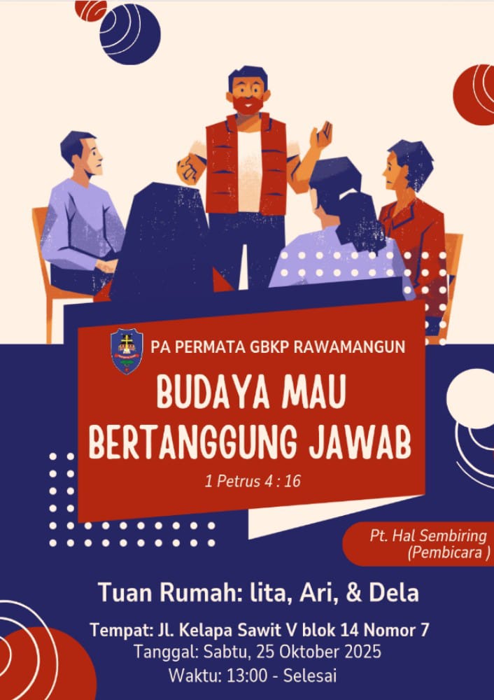 kehidupan. Demikian pula dalam kehidupan, PERMATA GBKP bertanggung jawab untuk menjaga identitasnya sebagai orang yang dipilih Tuhan, baik dalam keluarga, gereja, dan masyarakat. Apapun yang dilakukan dalam hidup ini, lakukanlah itu dalam rangka melakukan kehendak Allah. Setiap orang bertanggung jawab atas hidupnya masing-masing sebab Allah telah memberikan kesempatan kepada manusia untuk menunjukkan kesetiaan sebagai orang-orang yang dipilih Allah untuk menerima kehidupan yang kekal.